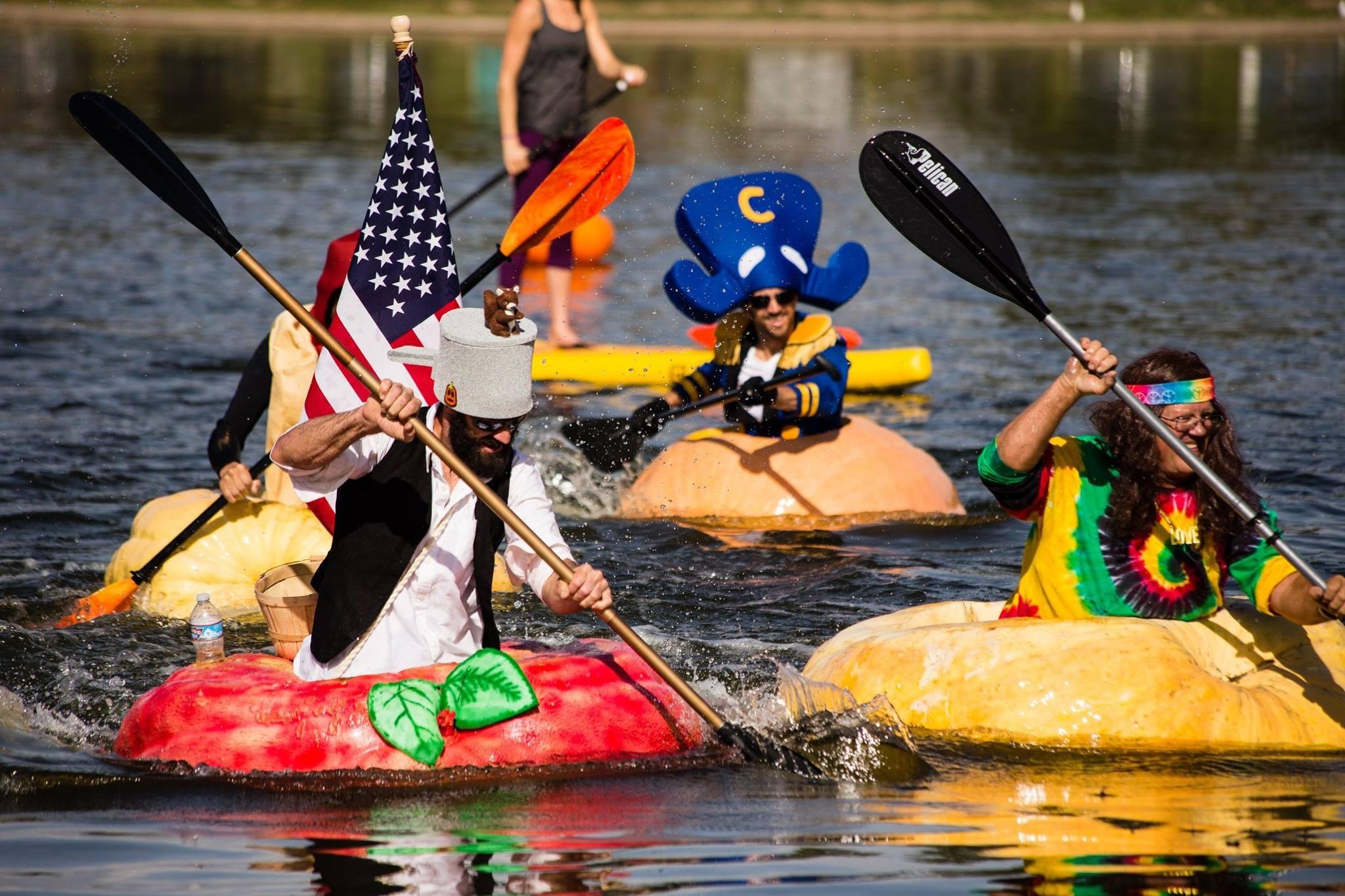 Участникам заплыва нужно вырастить тыкву и сделать из нее подобие лодки. Ограничений по апгрейдам нет. Некоторые умельцы умудряются прикрепить на нее автомобильный двигатель, винт и прочие полезные штуки. Главное, чтобы овощной «болид» не развалился до финиша.